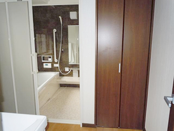 | 勝手口と窓もリフォームしました。 | 浴室の横には収納を設けました。 |