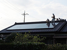 | 太陽光パネル(パナソニック)を屋根に設置しました。屋根の色にも違和感なく、マッチしていますね! |